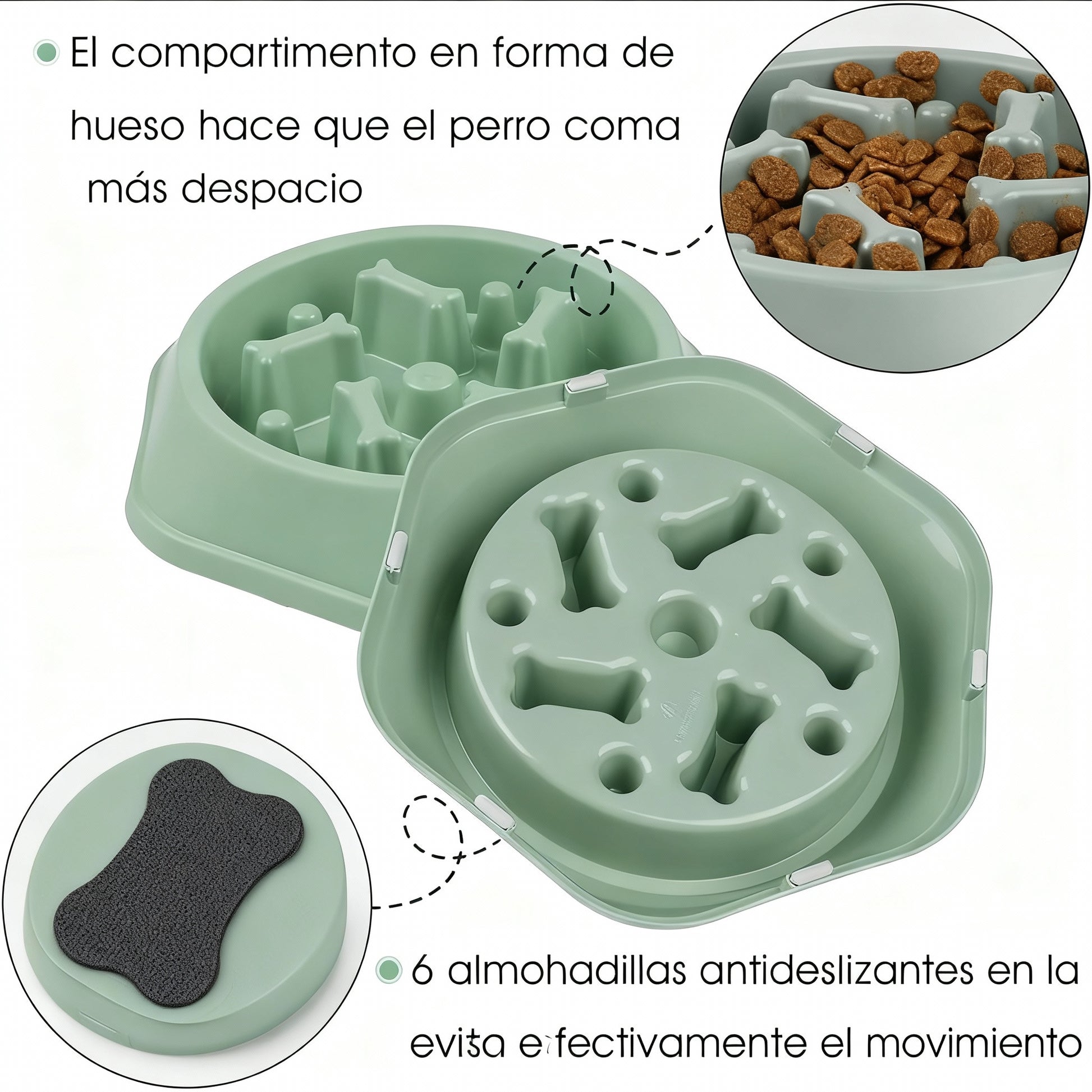 Nuestro comedero lento para perros está diseñado para que tu peludo coma más despacio, de forma segura y saludable, evitando atragantamientos, vómitos y problemas digestivos. 🐕